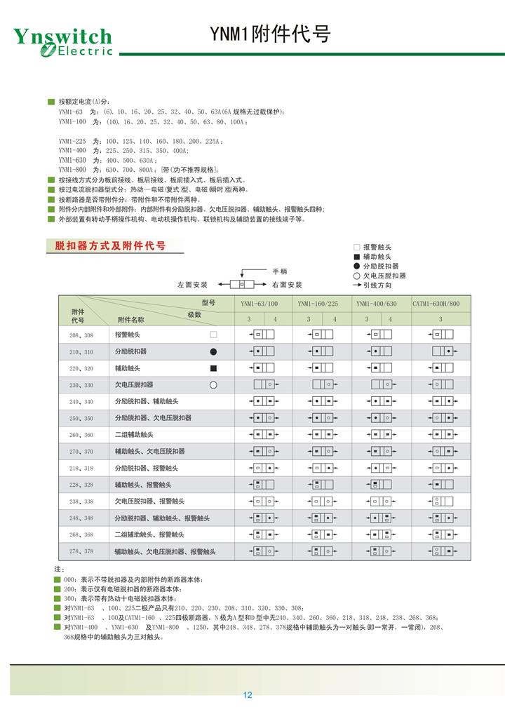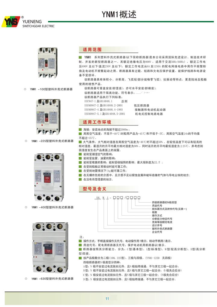 产品详情:YNM1系列塑壳断路器(以下简称断路器)是我公司使用国际先进设计制造技术开发研制的新型断路器之一,额定绝缘电压为800v,用以交流50hz(60hz)),额定工作电压690v及以下(dc250v及以下),额定工作电流用以6a〜1250a配电网电路中的不频繁变换和不频繁马达启动。断路器兼具过载,短路和欠压保护设备保护电路和电力装置不受损坏。